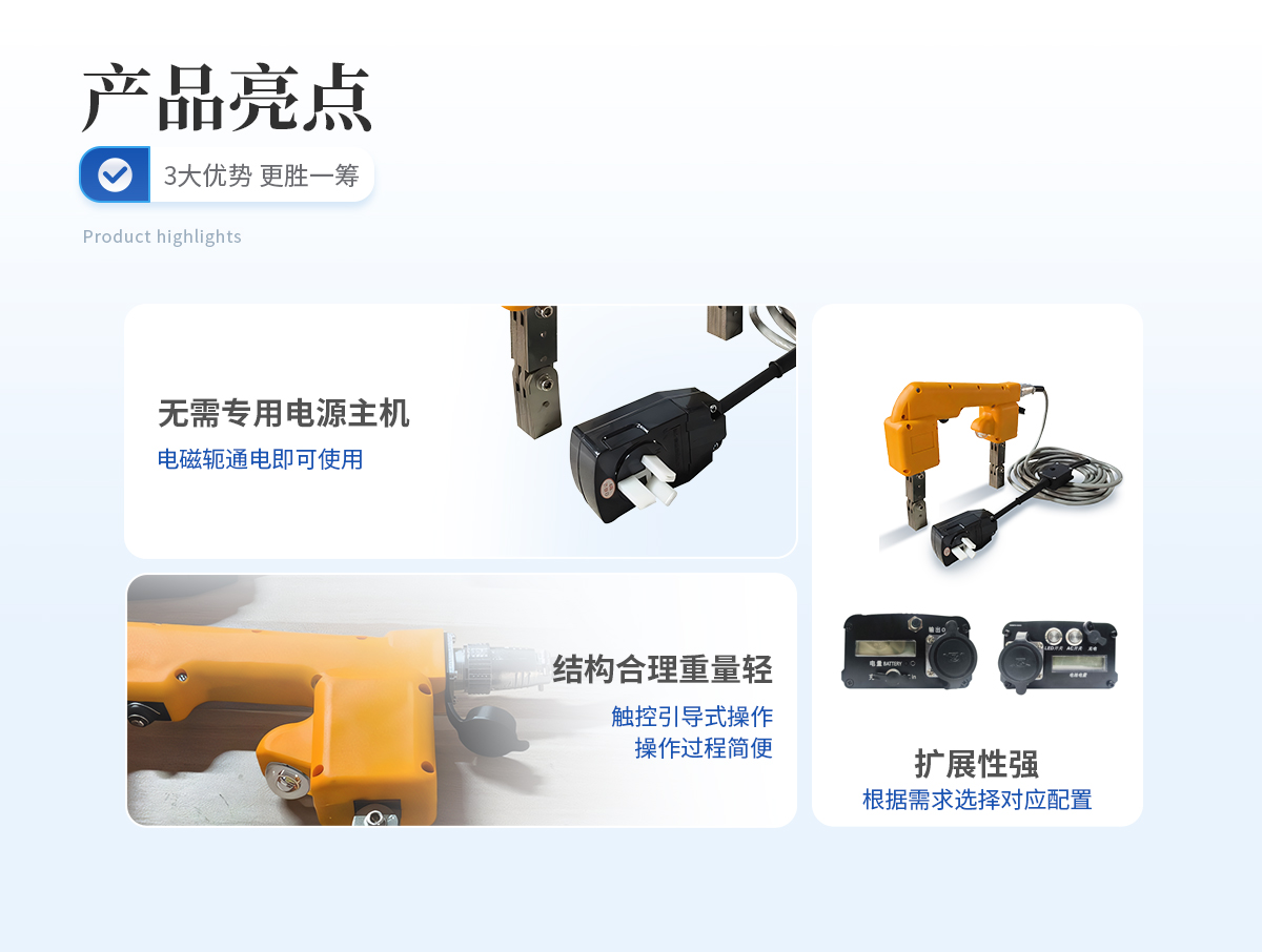 1、 無需專用電源主機,電磁軛通電即可使用;2、 體積小巧,重量輕;3、 開模制作,結構合理,手感舒適;4、 配專用儀器箱,電源配專用工作腰包5、 逆變交流鋰電池可滿足不方便拖電源線,且需要采用交流磁化的的場所使用。