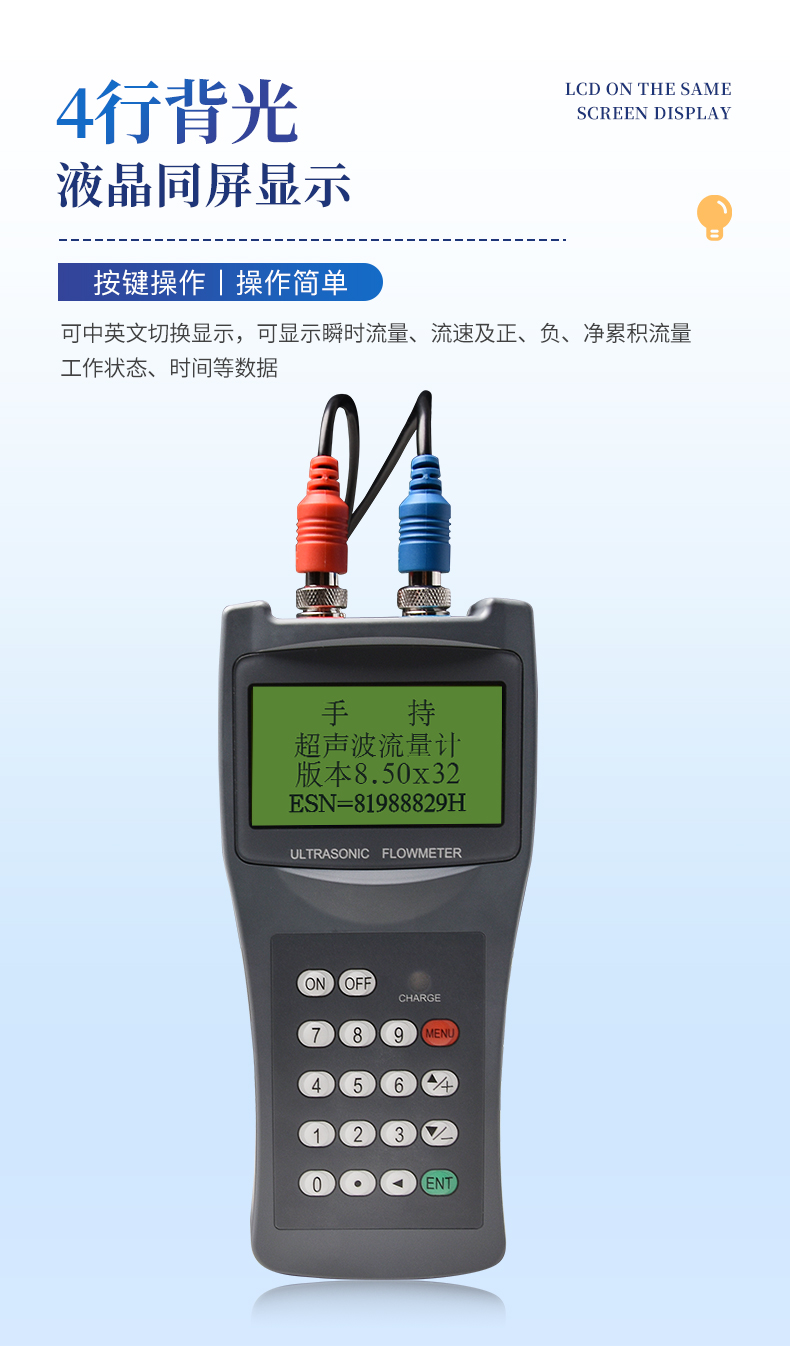 TDS- 100H手持式超聲波流量計(jì)是目前國(guó)內(nèi)體積*小,質(zhì)量*輕、技術(shù)***的一款流量巡檢專用儀表。具有測(cè)量精度高、測(cè)量穩(wěn)定性、重復(fù)性好、電池供電、操作簡(jiǎn) 單、攜帶方便、中英文雙語(yǔ)化等特點(diǎn),針對(duì)所測(cè)量的數(shù)據(jù)實(shí)現(xiàn)內(nèi)部存儲(chǔ),并同時(shí)具有與計(jì)算連接的通訊接口,可將數(shù)據(jù)導(dǎo)出到計(jì)算機(jī)上。廣泛應(yīng)用于工業(yè)現(xiàn)場(chǎng)中的各 種液體流量的在線標(biāo)定和巡檢測(cè)量;產(chǎn)品一經(jīng)推出即得到國(guó)內(nèi)外廣大客戶的青睞,已遠(yuǎn)銷、日本、韓國(guó)、歐美及中東地區(qū),受到國(guó)內(nèi)外客戶的一致好評(píng)。
