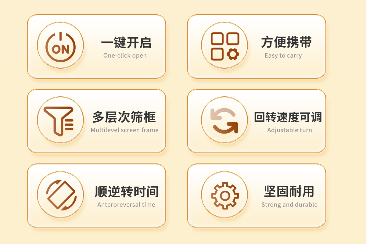 簡介:電動篩選器 YT-115 用途主要用于谷物選篩電動篩選器YT-115技術(shù)參數(shù)1、電機(jī)功率:60W;2、**篩量:500g;3、篩框?qū)哟危?層;4、篩動幅度:100mm;5、回轉(zhuǎn)速度:(0-115)±5r/min 可調(diào);6、順逆轉(zhuǎn)時(shí)間:60±1s 可調(diào);