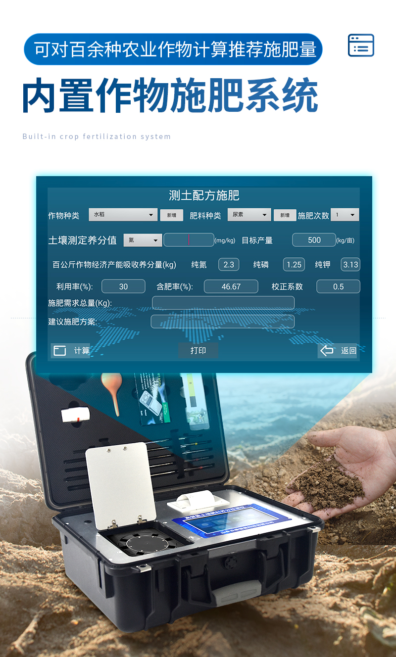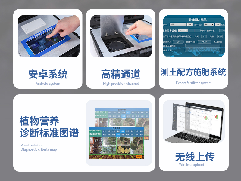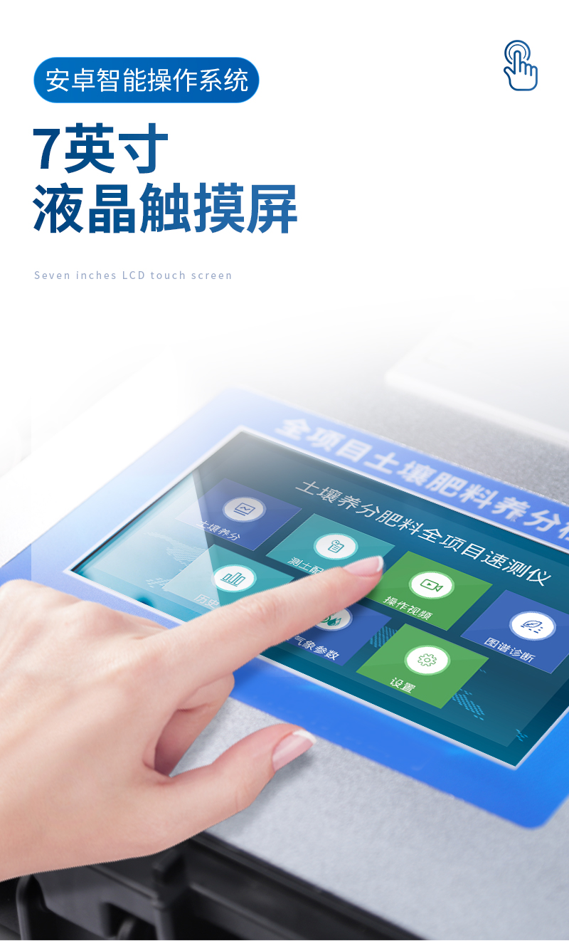 ★1、Android安卓智能操作系統(tǒng),主控芯片采用ARM Cortex-A7,RK3288/4核處理器,主頻1.88Ghz,運(yùn)轉(zhuǎn)速度更快速,穩(wěn)定性更強(qiáng)。 | ★2、18個(gè)檢測(cè)通道,一次性可快速檢測(cè)18個(gè)樣品,極大提升檢測(cè)效率,降低檢測(cè)成本。 | ★3、采用高精度濾光片技術(shù)自主**分析方法(**號(hào):** 2020 2 1763837.9),權(quán)威認(rèn)證。 | ★4、檢測(cè)過(guò)程中內(nèi)置校準(zhǔn)功能,智能恒流穩(wěn)壓,光強(qiáng)自動(dòng)校準(zhǔn),確保檢測(cè)準(zhǔn)確度,取得中國(guó)計(jì)量科學(xué)研究院的《校準(zhǔn)證書(shū)》。 | ★5、儀器標(biāo)配wifi無(wú)線上傳、4G聯(lián)網(wǎng)傳輸、GPRS無(wú)線遠(yuǎn)傳,快速上傳數(shù)據(jù)。 | ★6、配有智慧云農(nóng)業(yè)平臺(tái),儀器連入無(wú)線網(wǎng)絡(luò)后,可將檢測(cè)數(shù)據(jù)可選擇性或批量無(wú)線上傳,方便用戶(hù)進(jìn)行長(zhǎng)期數(shù)據(jù)管理和可視化分析。 | 7、儀器配同時(shí)具有USB接口、以太網(wǎng)接口,內(nèi)置大容量?jī)?nèi)存,并可隨時(shí)用U盤(pán)拷貝數(shù)據(jù)。 | ★8、可用手機(jī)隨時(shí)登錄云平臺(tái)在線移動(dòng)查看歷史數(shù)據(jù) | ★9、內(nèi)置作物專(zhuān)家施肥系統(tǒng),可對(duì)百余種全國(guó)農(nóng)業(yè)經(jīng)濟(jì)作物、果樹(shù)等的目標(biāo)產(chǎn)量計(jì)算推薦施肥量,依據(jù)施肥配方科學(xué)指導(dǎo)農(nóng)業(yè)生產(chǎn)。測(cè)土配方施肥結(jié)果可打印,打印內(nèi)容包含:作物種類(lèi)、肥料種類(lèi)、目標(biāo)產(chǎn)量、需求總量、建議施肥方案。 | 10、內(nèi)置植物營(yíng)養(yǎng)診斷標(biāo)準(zhǔn)圖譜,根據(jù)各農(nóng)作物營(yíng)養(yǎng)缺失的圖片,進(jìn)行葉面對(duì)比,診斷豐缺。 | ★11、4波長(zhǎng)專(zhuān)業(yè)測(cè)試?yán)涔庠矗t、藍(lán)、綠、橙),光源波長(zhǎng)穩(wěn)定,長(zhǎng)時(shí)間連續(xù)工作光源無(wú)溫漂現(xiàn)象,壽命長(zhǎng)達(dá)10萬(wàn)小時(shí)級(jí)別,重現(xiàn)性好,準(zhǔn)確度高。 | 12、比色池部分采用標(biāo)準(zhǔn)1cm比色皿,無(wú)機(jī)械位移及磨損,光路測(cè)試定位**,有效屏蔽外光干擾,保證檢測(cè)結(jié)果優(yōu)于國(guó)標(biāo)要求。 | ★13、儀器系統(tǒng)內(nèi)帶有樣品前處理操作視頻,各種樣品檢測(cè)方法點(diǎn)擊視頻模塊即可觀看,檢測(cè)人員無(wú)需自學(xué)說(shuō)明書(shū),指導(dǎo)教學(xué)方便快速,方便新手快速操作。 | 14、內(nèi)置新一代高速熱敏打印機(jī)(無(wú)需色帶),打印內(nèi)容包含:檢測(cè)單位、檢測(cè)人員、檢測(cè)項(xiàng)目、通道號(hào)、吸光度、養(yǎng)分含量(mg/kg)、檢測(cè)時(shí)間、以及二維碼等信息 | ★15、高靈敏7寸真彩觸摸屏,采用更加**和人性化操作,高清晰高交互顯示,大程度降低傳統(tǒng)儀器的繁瑣操作和失誤,并取得多項(xiàng)《軟件著作權(quán)》。 | 16、內(nèi)置時(shí)鐘功能,方便操作時(shí)間記錄,長(zhǎng)期歷史追溯。 | 17、可設(shè)置多賬戶(hù)賬號(hào)密碼登錄,**UI交互界面,不同的用戶(hù)可自由添加編輯檢測(cè)信息,保存后可長(zhǎng)期使用。 | 18、GPS功能:可在野外作業(yè)時(shí)記錄經(jīng)緯度地點(diǎn),滿(mǎn)足特殊用戶(hù)需求。 | 19、內(nèi)置低電壓提示功能,可在檢測(cè)時(shí)明確電量,避免測(cè)試數(shù)據(jù)偏移,同時(shí)具有斷電保護(hù)功能,斷電自動(dòng)保存數(shù)據(jù),防止數(shù)據(jù)丟失。 | 20、交直流兩用供電方式,內(nèi)置大容量充電鋰電池,滿(mǎn)電狀態(tài)下可連續(xù)工作10余小時(shí),同時(shí)可外接車(chē)載電源蓄電。 | ★21、儀器具有中英文切換功能,可滿(mǎn)足出口要求。 | 22、高強(qiáng)度PVC工程塑料手提箱設(shè)計(jì),堅(jiān)固耐用,便于攜帶。 |