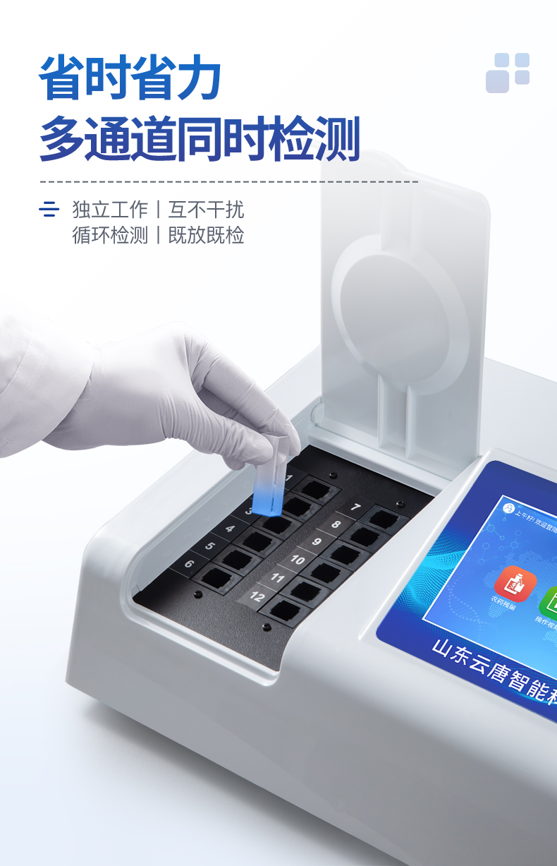 乙酰膽堿酯酶和丁酰膽堿酯酶試劑均可以使用,符合國家標準和農業部標準的要求。 自動判斷樣品是否合格,檢測結果更加直觀。儀器具有100多種蔬菜名稱菜單庫,分類管理,并可按需添加或刪除蔬菜名,編輯蔬菜名稱,可直接打印出蔬菜名稱。 檢測通道:12個檢測通道,可以同時測試多個樣品,循環檢測,即放即檢,每個樣品由程序控制分別獨立工作,不會互相干擾。智能操作系統,采用更加人性化操作,主控采用多核處理器,主頻1.88Ghz,運轉速度更快速,穩定性更強。 顯示方式:7英寸高靈敏真彩觸摸屏顯示,人性化中文操作界面,讀數直觀、簡單。打印機采用串口5v打印,可選擇手動打印或者自動打印,三分鐘出打印結果,打印格式為檢測人姓名、吸光度差值、檢測時間、檢測機構、樣品名稱及結果判定。 光源采用進口超高亮發光二極管,具有低功耗、高精度、穩定性強、光源可控可以關掉不使用的光源,響應速度快等優點。智能恒流穩壓,光強自動校準,長時間連續工作光源無溫漂現象。 儀器具有GPRS遠傳功能,可插手機卡實現數據遠傳平臺,wifi聯網功能,可將數據快速上傳電腦,進行數據管理與統計。采用USB2.0接口設計,方便數據的存貯和移動,并可隨時與計算機直接相連,并且可用計算機控制儀器。實現數據查詢、瀏覽、分析、統計、打印等。 智能化程度高,儀器具有自檢功能:具有開機自檢和調零功能,具有自動檢測重復性功能儀器具有自身保護功能,可設置用戶名及密碼,防止非工作人員操作等。 采用DC12v直流供電,安全系統更高,并且配備6A鋰電池充電器。儀器具有重新校準、鎖定、恢復出廠設置功能。
