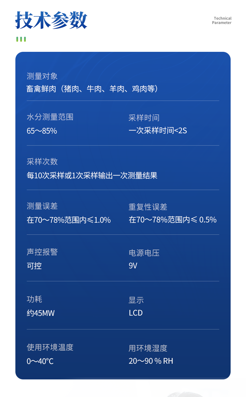 l     測量對象:畜禽鮮肉(豬肉、牛肉、羊肉、雞肉等)