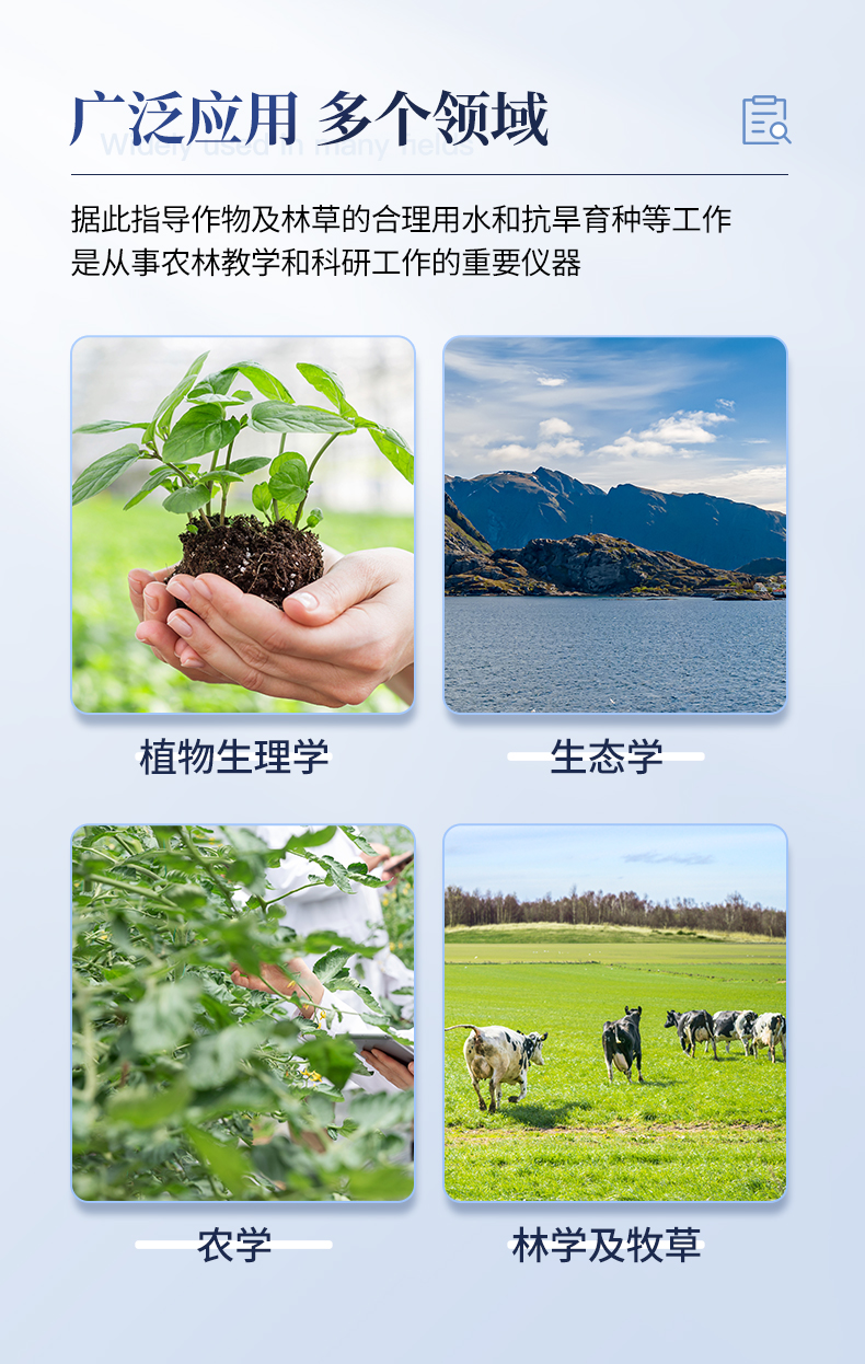 YT-ZSS植物水勢測定儀,是用于測定植物水分狀況和它的組成成分及壓去木質部位導管汁液提供成分分析用的一種分析儀器。可以利用此儀器研究植物的水分關系和植物與環境的關系。YT-ZSS植物水勢測定儀適用于植物生理學、生態學、農學、林學及牧草等的研究。據此指導作物及林草的合理用水和抗旱育種等工作,是從事農林教學和科研工作的重要儀器.