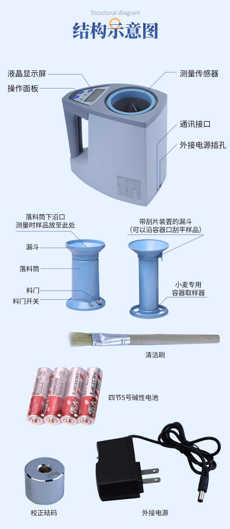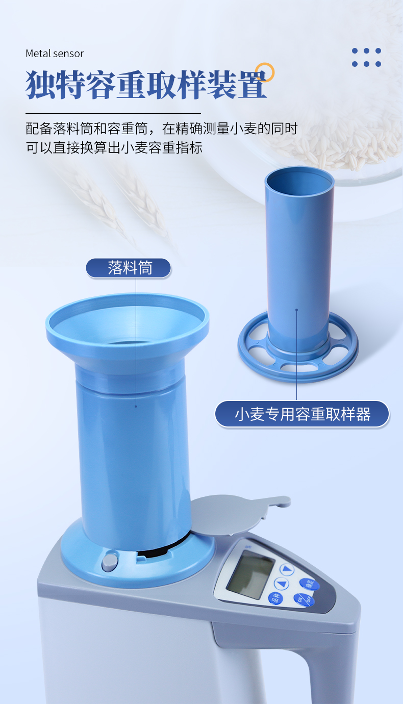 容重換算:獨特的**容重取樣裝置在**測量小麥的同時,可以直接換算出小麥容重指標。