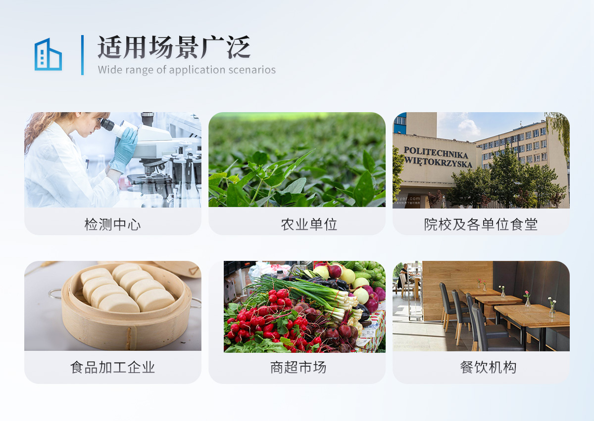 | 儀器采用臺式一體化系統(tǒng)檢測技術(shù),將分光光度模塊、新型農(nóng)殘檢測模塊、數(shù)字化管理模塊、無線通訊模塊高度集成于一體,支持檢測200種食品安全檢測項目,同時預(yù)留升級檢測方法。 | 儀器檢測模塊標(biāo)準(zhǔn)化、智能化,可隨意自由組合。檢測箱體內(nèi)置多個標(biāo)準(zhǔn)檢測單元,檢測模塊可以調(diào)整配置。 | 儀器采用全新安卓智能系統(tǒng),主控芯片采用 ARM Cortex-A7,RK3288/4核處理器,10.1寸高清液晶觸摸豎屏,更加**的UI交互界面,運轉(zhuǎn)快捷;儀器配備無線通信模塊: 4G(APN)通訊模塊、Wifi模塊,藍(lán)牙傳輸,同時具有雙USB接口以及RJ45接口能以多種方式實現(xiàn)數(shù)據(jù)保存和數(shù)據(jù)傳輸功能。 | 創(chuàng)新檢測模式: | ★檢測通道:≥12通道;采用精密旋轉(zhuǎn)比色池設(shè)計,使用同芯片同光源校準(zhǔn)精度,解決不同光源之間的誤差值。1-12通道間誤差0.1%。(**號:**202022821055.2) | ★儀器具有自動識別比色皿檢測功能,即:將樣品比色皿放入儀器后,點擊樣品檢測,儀器自動識別比色皿進(jìn)行通道檢測。 | 進(jìn)口高精光源: | 高精度進(jìn)口四波長冷光源,通道配置 410、520、590、630nm 波長光源,一個光源芯片驅(qū)動一個光源,誤差極小,每臺設(shè)備單獨**校準(zhǔn)光源,**比對,同時參照四種不同波段光源全方位覆蓋市面上99%的農(nóng)殘食品項目檢測。 | 智能化操作系統(tǒng): | 便捷操作系統(tǒng):設(shè)備檢測時可在同一檢測界面自動對應(yīng)相關(guān)檢測通道一次性選擇1-12個樣品名稱,無須退出界面,節(jié)省操作時間。 | 數(shù)據(jù)集成系統(tǒng):設(shè)備首頁自動統(tǒng)計檢測數(shù)據(jù)包含:周檢測數(shù)據(jù)、月檢測數(shù)據(jù),全部檢測總數(shù)量,均包含檢測總數(shù),合格數(shù),不合格數(shù),以及相關(guān)柱形分析圖,對各項檢測數(shù)據(jù)清晰掌握,無需電腦查詢,更加快捷直觀。 | 項目預(yù)設(shè)系統(tǒng):支持添加單個及多個相同或不相同的任務(wù)預(yù)設(shè),一鍵快速調(diào)取,每一個任務(wù)分別可以設(shè)置不同的樣品、批次、編號、來源、備注、抽樣信息、檢測信息、受檢信息、復(fù)核信息等更多信息。無縫鏈接平臺和APP實時查看下發(fā)任務(wù)。 | 數(shù)據(jù)監(jiān)管系統(tǒng):同步對接監(jiān)管平臺,數(shù)據(jù)可局域網(wǎng)和互聯(lián)網(wǎng)數(shù)據(jù)上傳,檢測結(jié)果可選擇直接傳至食品安全監(jiān)管平臺。集成OSS輸出存儲服務(wù)、區(qū)分設(shè)備定向管理應(yīng)用,進(jìn)行區(qū)域食品安全監(jiān)管及大數(shù)據(jù)分析處理與數(shù)據(jù)統(tǒng)計,檢測區(qū)域食品安全長短期動態(tài),達(dá)到食品安全問題預(yù)估、預(yù)警。 | 自定義打印系統(tǒng):內(nèi)置全新打印系統(tǒng),新創(chuàng)自定義打印方式,可按需靈活設(shè)置開啟或關(guān)閉:產(chǎn)品合格證(國家農(nóng)業(yè)部標(biāo)準(zhǔn)要求),二維碼,抽樣信息、檢測信息,受檢信息、復(fù)核信息、抽樣日期、檢測日期等信息的打印。 | 系統(tǒng)遠(yuǎn)程更新功能:可定向分客戶分儀器更新系統(tǒng),按照不同客戶后期實際需求添加項目,無需機器返廠,即可遠(yuǎn)程實時升級全新系統(tǒng),節(jié)省時間成本及避免運輸造成設(shè)備損壞。 | 儀器主機采用一體化防水、抗壓、防撞擊、防腐蝕箱體設(shè)計,同時配備交直流供電,可連接車載電源,可選配大容量充電鋰電池,滿足現(xiàn)場野外檢測需求。 | 安全證書,放心保障:儀器具有中國計量科學(xué)研究院校準(zhǔn)證書,權(quán)威認(rèn)證。 |