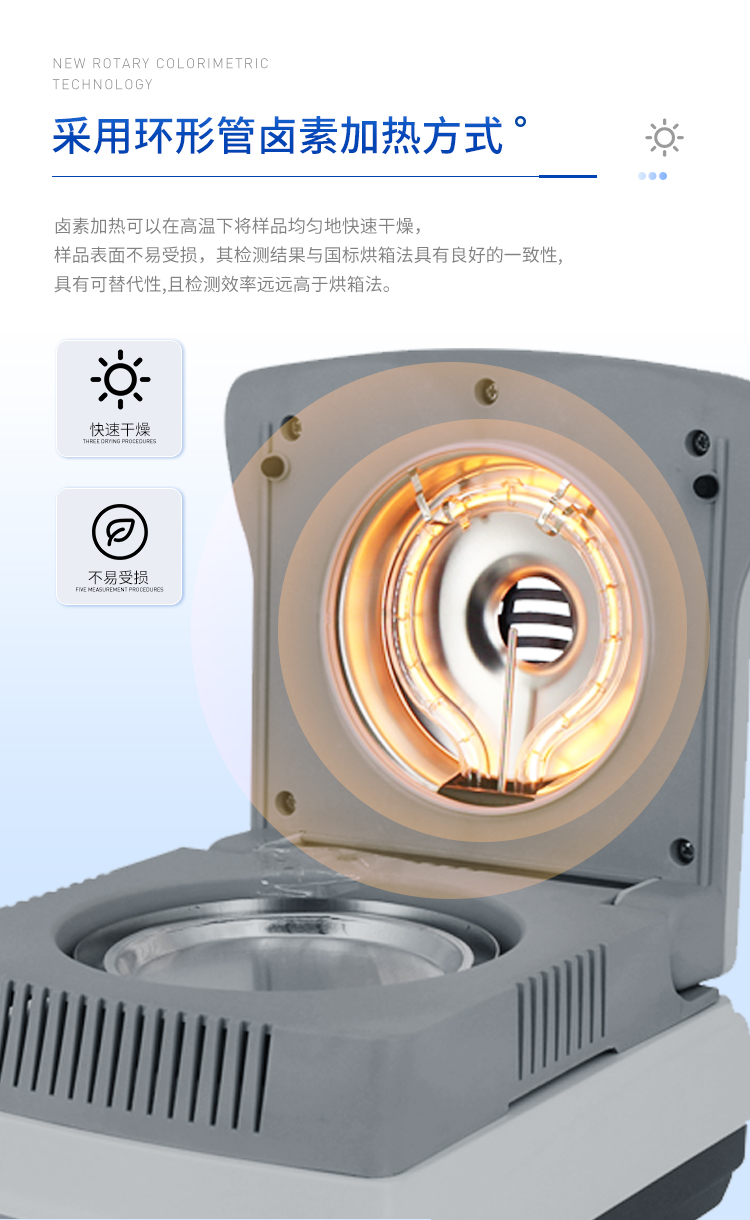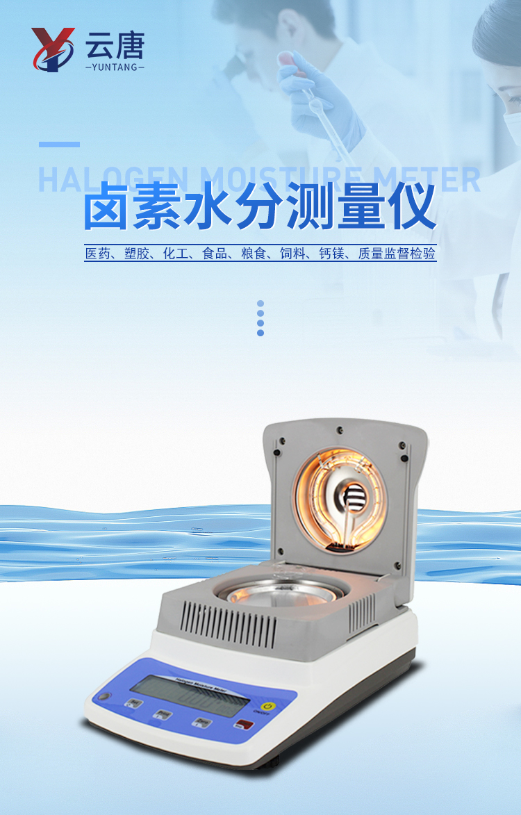 鹵素水分儀用于如:醫藥、塑膠、化工、食品、糧食、飼料、鈣鎂、質量監督檢驗、等各行業中的生產過與實驗過程中, 具有良好重現性的水分測定結果;清晰的按鍵和水分測定信息顯示,實現直觀簡單地儀器操作;創新的預先存儲的16種不同樣品水分測定方法數據庫,使得測試方法的開發快速、簡單