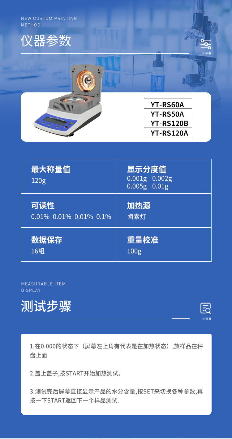 鹵素水分測定儀 YT-RS120A 產品詳情: