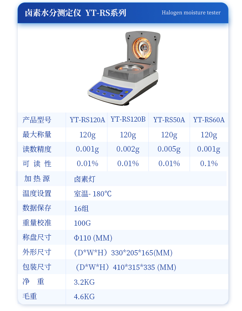 高精度鹵素水分儀 YT-RS100D 產品詳情: