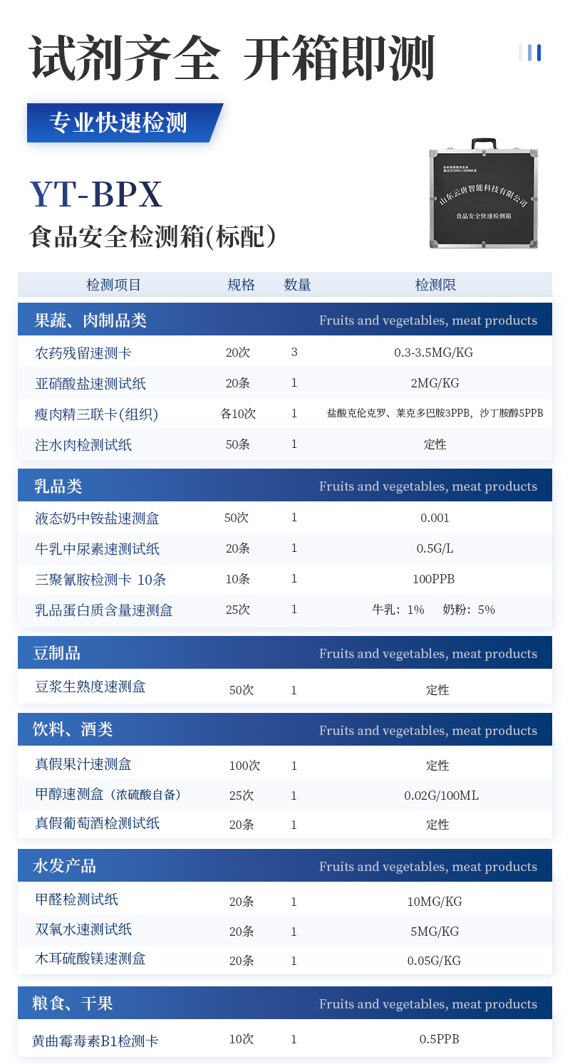 序號適用范圍檢測項目規格單位數量檢測限檢測范圍