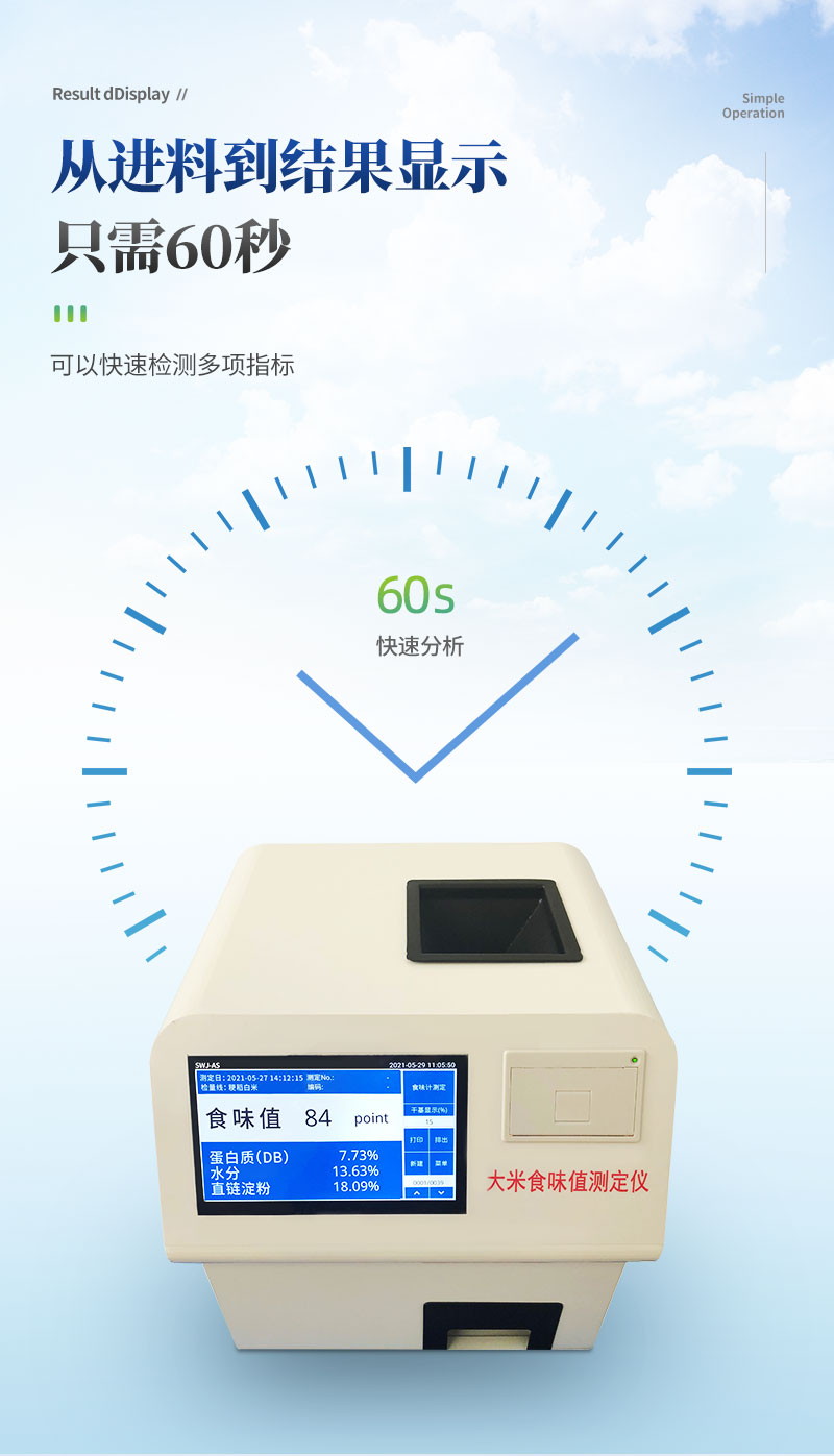 2、分析快速,從進料到結果顯示只需60秒,可以快速檢測多項指標。