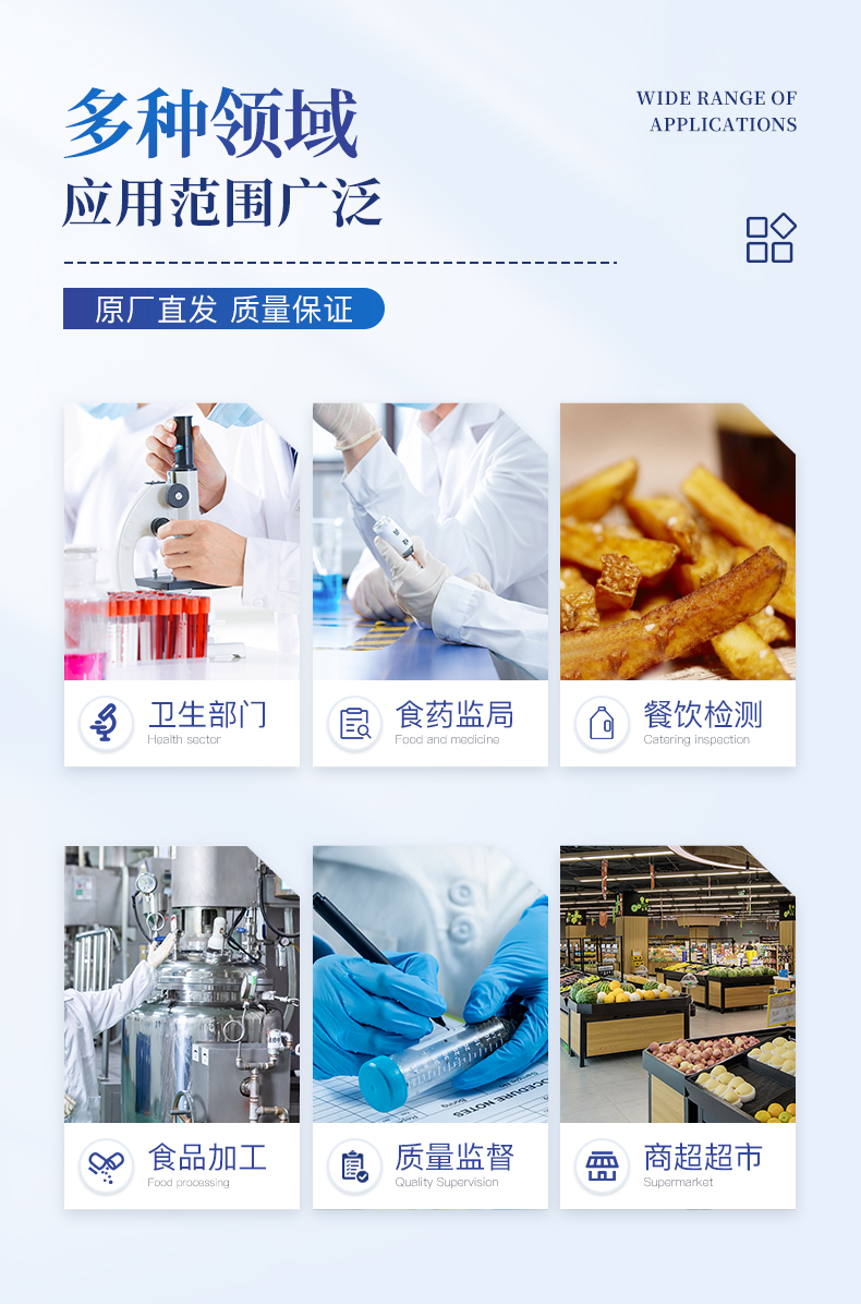 廣泛應用于質量監督檢驗、工商管理、油炸食品生產基地、食藥監局、衛生部門、肉制品食品深加工企業、商場超市、各大食品安全監測系統等單位使用。