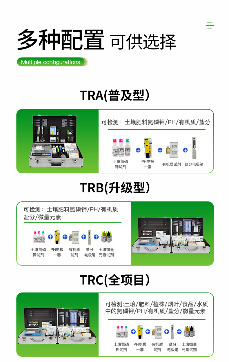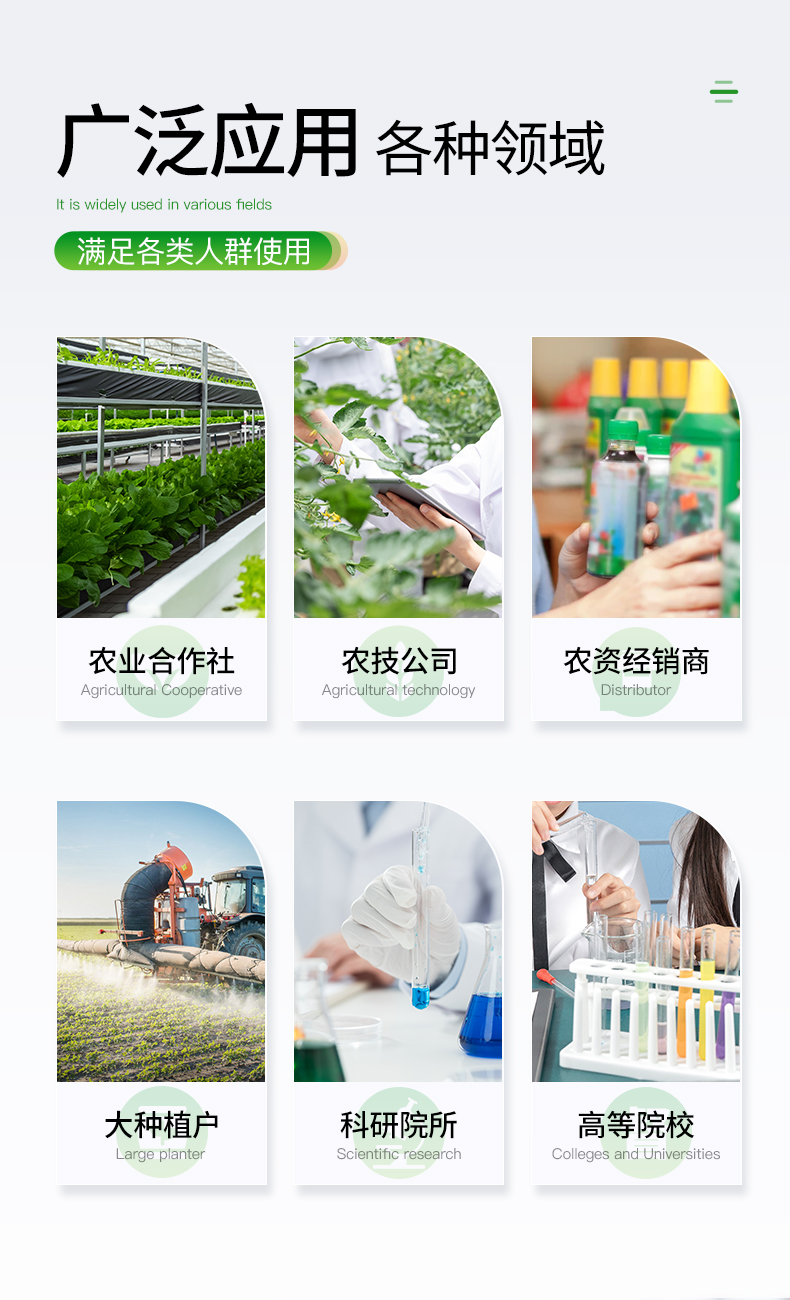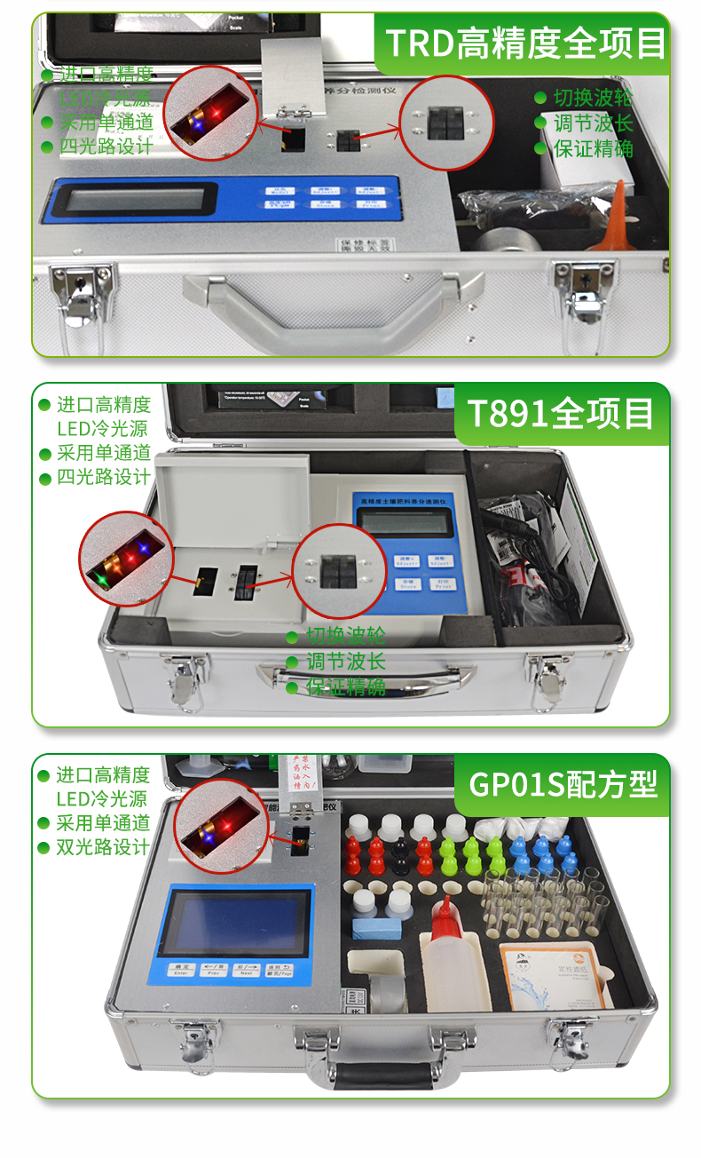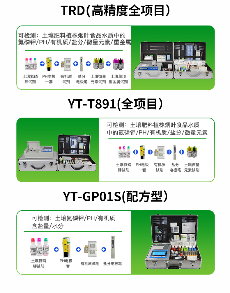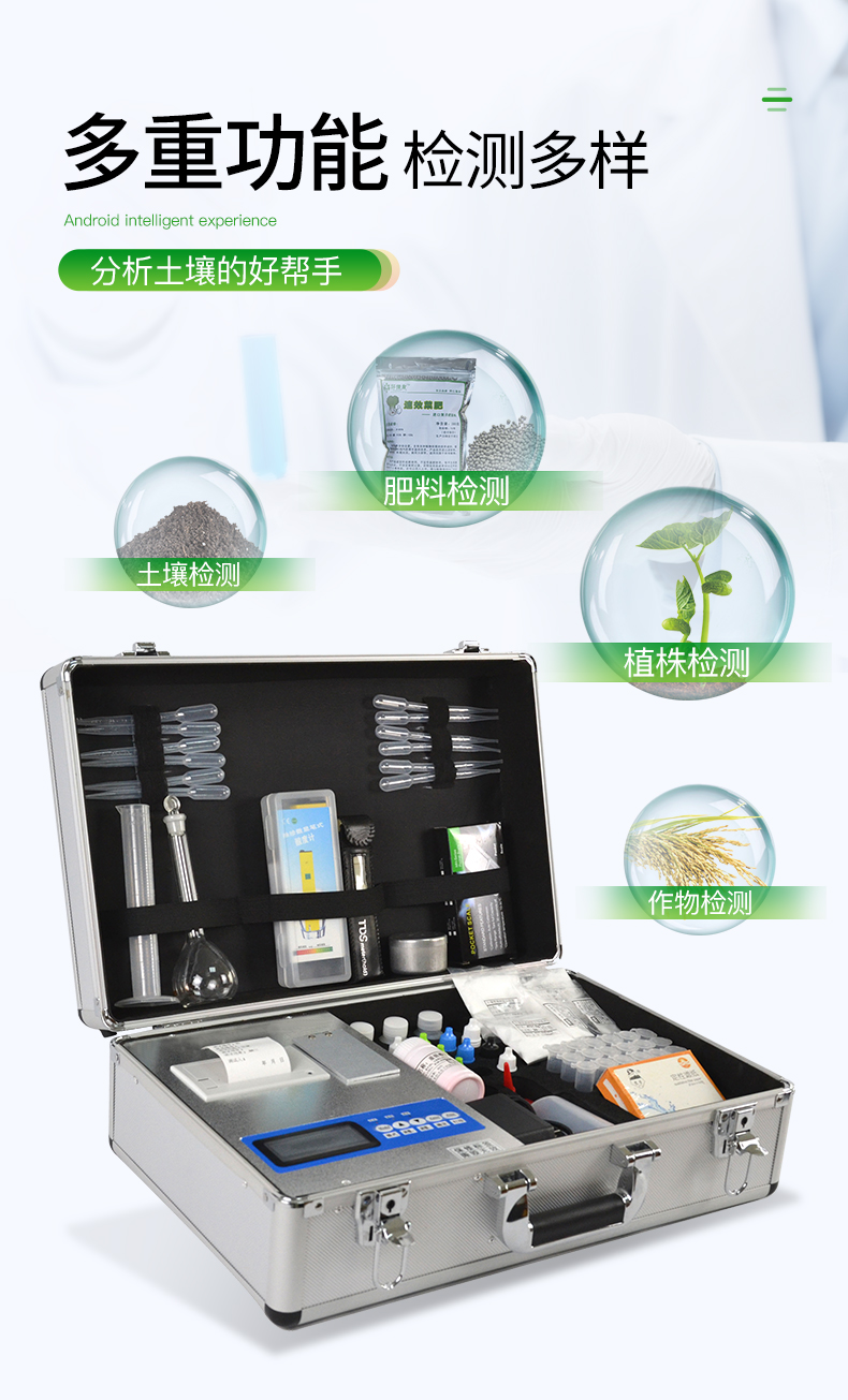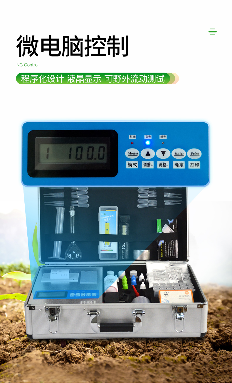 配套齊全:該儀器集藥、器、儀為一體,攜帶方便,相當于一個小型實驗室。適于農業服務部門或農資經銷商、肥料廠商測土配方施肥。