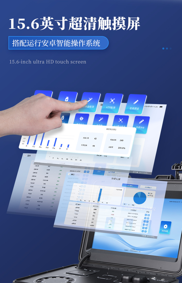 山東云唐智能科技有限公司生產的高智能食品安全檢測儀為集成化食品安全快速檢測分析設備,采用臺式一體化設計,可快速檢測200多種食品安全項目,包含非食用化學物質、濫用食品添加劑、農藥殘留、獸藥殘留、重金屬、病害肉、營養強化劑、抗生素類殘留、激素類殘留、真菌毒素類殘留、化學類殘留等項目的定性定量檢測。
