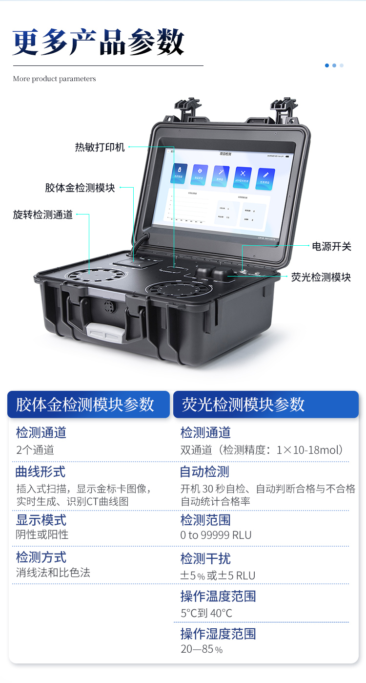 1、儀器采用臺式一體化系統檢測技術,將分光光度模塊、膠體金檢測模塊、新型農殘檢測模塊、數字化管理模塊、無線通訊模塊高度集成于一體,支持檢測200種食品安全檢測項目,同時預留升級檢測方法。