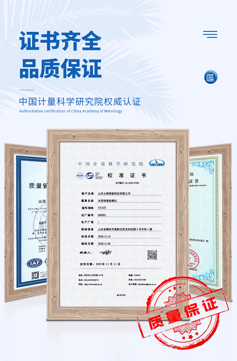 11、安全證書,放心保障:儀器具有中國計量科學研究院校準證書,權威認證,使用放心。