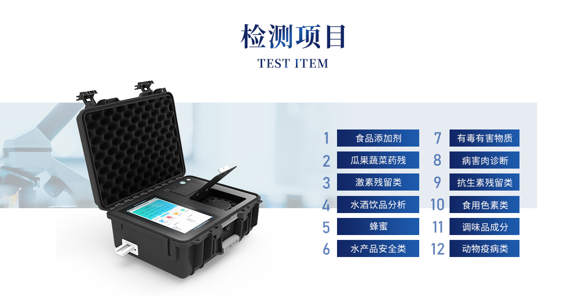箱式12通道食品快檢儀 YT-GB12 檢測項(xiàng)目: