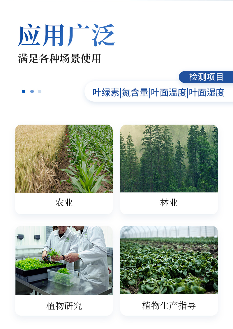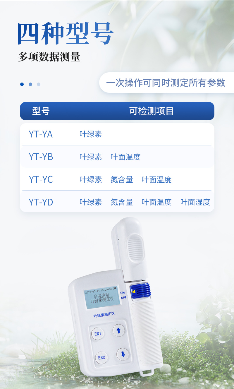 1.檢測項目:葉綠素含量、氮含量、葉面溫度、葉面濕度