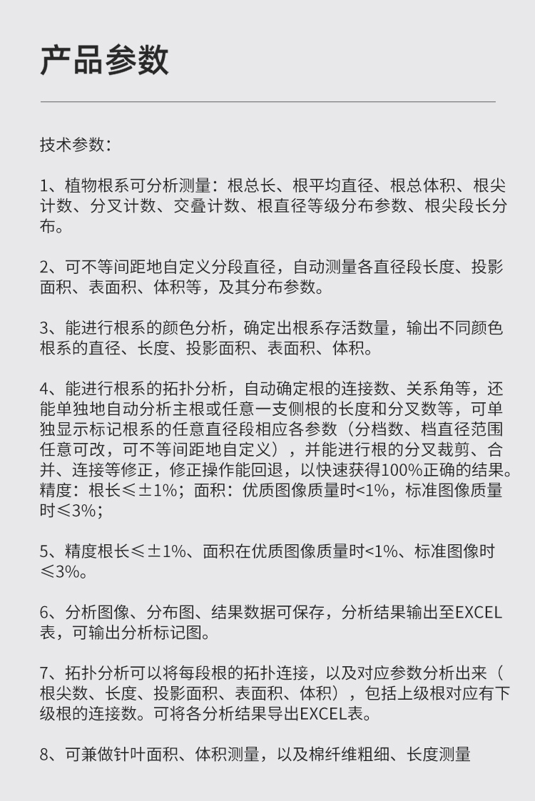 三、植物冠層分析儀主要技術參數: