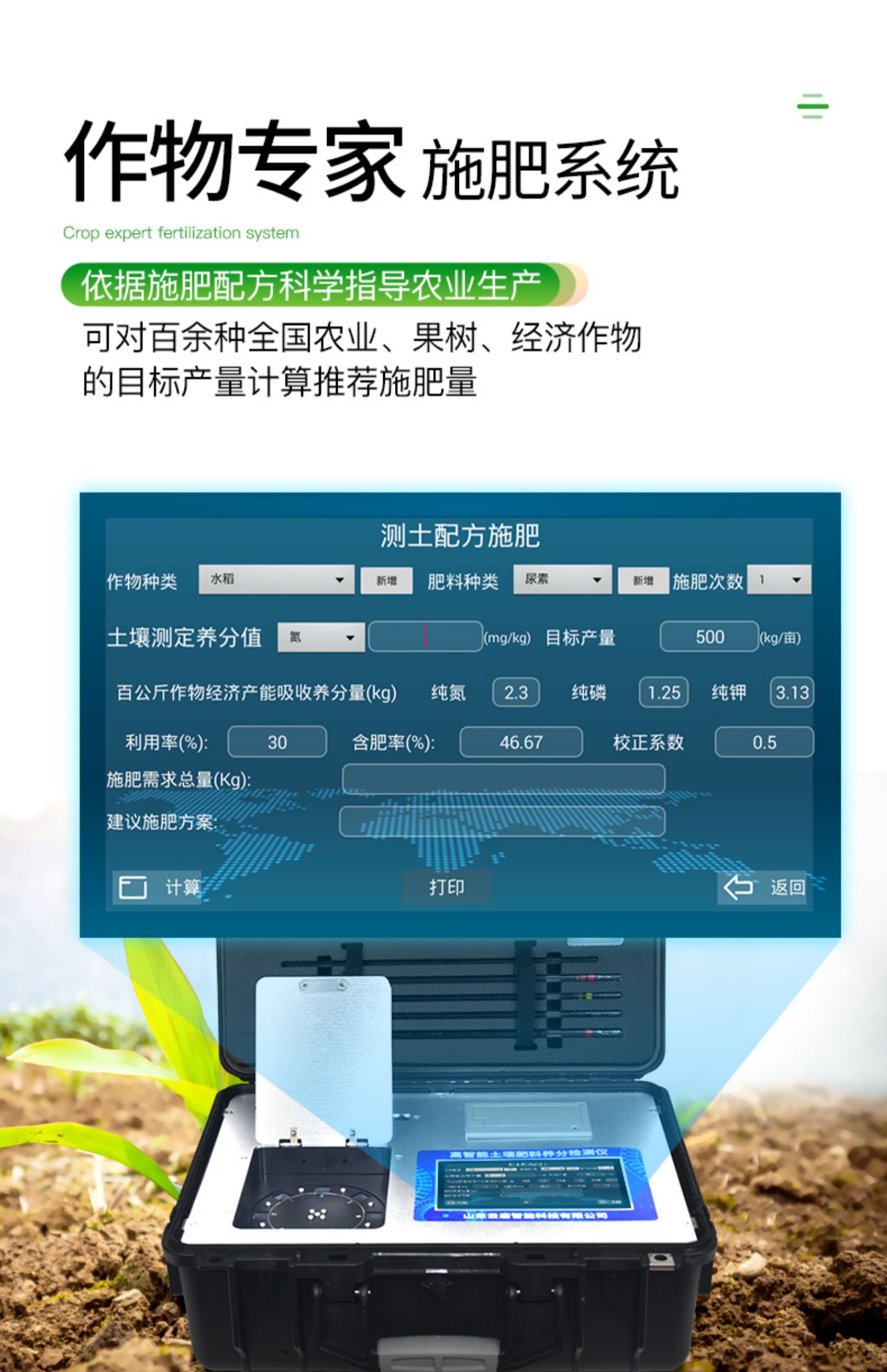 | 儀器整機質(zhì)保一年,終身免費維修服務(wù),免費郵寄儀器、免費培訓(xùn)。 | 終身免費提供土肥等農(nóng)業(yè)相關(guān)技術(shù)支持! |